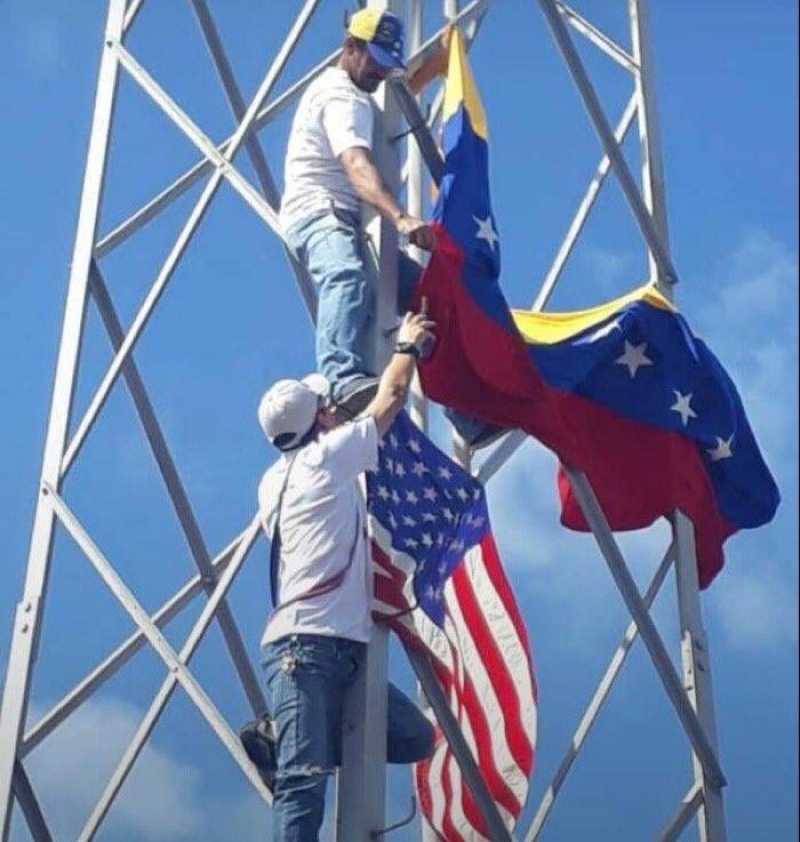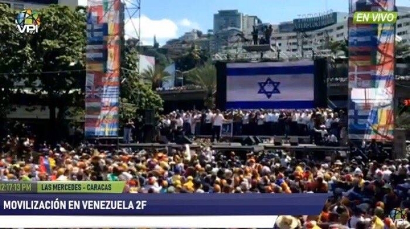 قامت المعارضة الفنزويلية بتصرف غير متوقع عبر انزال العلم الفنزويلي ورفع علمي الولايات المتحدة والكيان الصهيوني خلال تجمع ضد الرئيس مادورو.