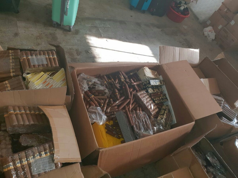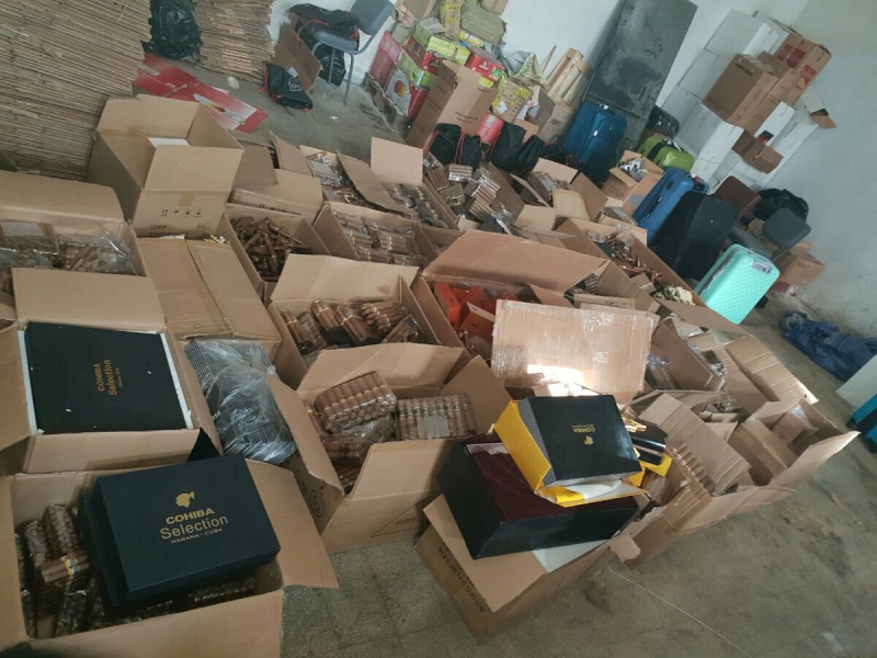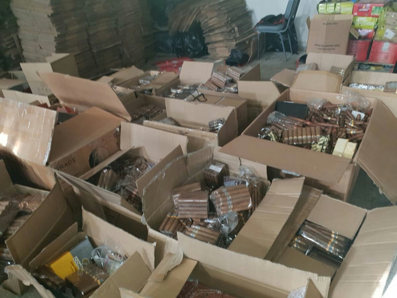 وفي هذا الإطار، دهمت دوريات الجهاز مستودعاً لتزوير السيجار ، وصادر كامل الكمية مع الملصقات الخاصة بالتزوير.
