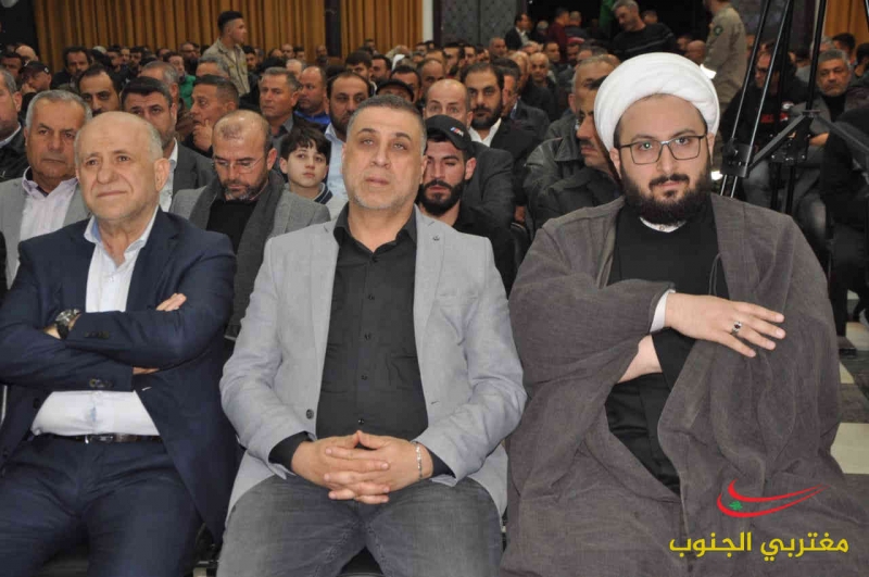في أجواء ولادة منقذ البشرية الإمام المهدي المنتظر (عج) أقامت حركة أمل - إقليم جبل عامل إحتفالاً حاشداً بهذه المناسبة العطرة في حسينية بلدة جويا، بحضور عضو هيئة الرئاسة في حركة أمل رئيس مجلس الجنوب الدكتور قبلان قبلان، المسؤول التنظيمي لإقليم جبل عامل المهندس علي إسماعيل على رأس وفد من قيادة الإقليم، رئيس بلدية جويا حسن جشي، رئيس بلدية معركة عادل سعد، وفود من المناطق والشعب الحركية، وحشد من الفعاليات الإجتماعية والبلدية والإختيارية وأهالي البلدة والجوار. قبلان بدأ الحفل بتلاوة آيات من القرآن الكريم بصوت المقرئ الدولي علي كوراني، والنشيدين اللبناني وحركة أمل، ثم تقديم من المسؤول الإعلامي في إقليم جبل عامل علوان شرف الدين، بعدها ألقى الدكتور قبلان قبلان كلمة حركة أمل تحدث فيها عن ظهور الإمام المهدي الذي سيملأ الأرض قسطاً وعدلاً بعد أن مُلئت ظلماً وجوراً، مؤكداً أن رسالة الأئمة للأمة جاءت لتخفف عنهم وتحفظ دينهم ودنياهم وعملهم، فهذه هي أرقى مدرسة بشرية علينا الإنتماء إليها، لافتاً الى ضخامة هذه النعمة التي ستكون طريق النجاة في الآخرة، لذلك علينا أن نحسن استثمارها والتعاطي معها والإيمان بها والعمل بهذه النعمة في كل صغيرة وكبيرة وأفضل الأعمال والإيمان هو الإنتظار مع القيام بالأسس الدينية والتربوية والإجتماعية وتأكيد الولاء لأهل البيت(ع) والدعاء لهم بالفرج. وقال: " في ظل الظروف المتعددة المشاكل وسط الأوضاع الضاغطة على كل مستوى من مستويات الحياة وكافة الميادين ونحن نسمع أن هناك وضعاً إقتصادياً صعباً تعيشه المنطقة وأن هناك محاولات حثيثة للوصول الى طريق النجاة، علينا أن نسرع بالخروج من هذه الأزمة فإن ما ينتظرنا أخطر بكثير". وتابع: "إن مسؤولية الدولة اللبنانية إخراج البلد من هذه الأزمة عبر إيجاد حلول سريعة ولكننا نخشى أن تكون الحلول الإقتصادية والمالية هي وصفات قادمة من مكان ما تريد للبلد المزيد من الإنزلاق والأخطار". وقال: " نحن ننتظر في الأسابيع القادمة أن يعلن عما يسمى بصفقة القرن وهي صفقة أقل ما يقال فيها أنها تريد تصفية القضية الفلسطينية بكل جوانبها، لافتاً الى أنه لم يعد هناك أي بلد عربي واحد قادر على مواجهة أي خطر يحدق به لأنه يوجد لديه في الداخل ما يكفي من المشاكل التي تمنعه من التفكير في أية قضية خارج حدوده". وتابع: "سيعلن في هذه الصفقة قريباً إسقاط حق العودة الى فلسطين، وعندما يطرح موضوع التوطين سيكون لبنان في حالة من الغضب والتعب على المستوى الإقتصادي ليقولوا أن هذا ثمن التوطين خذوها وانتهوا من مشاكلكم وإلا زاد الضغط الإقتصادي على لبنان لأننا أصبحنا في يد البنك الدولي والمؤسسات الدولة التي تعمل في سياق المشروع الأمريكي والإسرائيلي في كل بلدان العالم، وذلك لأننا لا زلنا البلد الوحيد الذي لا زال يواجه هذا المشروع بين البلدان العربية الملتهية بمشاكلها الداخلية". وأكمل أن أبناء الحجة يسيرون بعكس الدول العربية ويسيرون بطريق المقاومة، قائلاً: "نحن واجهنا اسرائيل وانتصرنا عليها وإذا كنتم تريدون الإكمال في هذه المواجهة فنحن مستعدون، لذلك يجب أن ننتبه وأن لا نسير مع الشعارات التي تطرح هنا وهناك، نحن مع حقوق العمال والموظفين ومع حقوق الطبقات المحرومة والمسحوقة ومسؤولية الدولة إيجاد الحلول الناجحة على كافة المستويات، ولكن إيانا الإستسلام والرضوخ وإلا كنا قد تخلينا عن قيمنا وكل حقوقنا". وأضاف: "علينا أن ننتبه فهناك جمعيات تسمى مجتمع مدني وتعمل على بث روح الهزيمة بيننا والكثير منها يظهر على أنه حق ولكن يراد به باطل، قائلاً أن المال لن ينفعنا بشيء ونحن أتباع هذا الخط لدينا خيار ونختار الحق ولا نستسلم، فاحذروا من الأصوات التي تريد أن تبث الهزيمة في نفوسنا والضياع في أفكارنا". وختم: "نحن مدعوون جميعاً للعمل في خدمة أهلنا وشعبنا وأن نحفظ هؤلاء الناس وأن نتمسك بمجموعة القيم والمبادئ التي تربينا عليها، مؤكداً أن كل ما يجري في هذه المنطقة يدخل في إطار المشروع ا