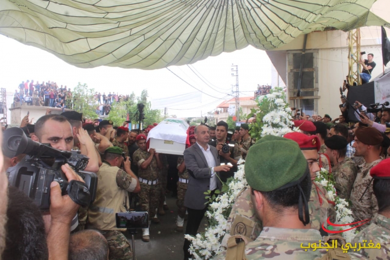 وصل عند التاسعة والنصف من صباح اليوم، جثمان شهيد الجيش الملازم أول حسن علي فرحات، إلى جبانة بلدته برعشيت في قضاء بنت حبيل، بعد رحلة طويلة من طرابلس الى بيروت الى الجنوب، لتغطي شهادته مساحة الوطن من جنوبه الى شماله بعد ان نالت منه يد الغدر والحقد التكفيري، بموكب حاشد، واستقبلته قرى الجنوب وبلداته بالزغاريد ونثر الأرز والورود، وكان في الاستقبال النائب أيوب حميد ممثلا الرئيس نبيه بري، مفتي صور الشيخ مدرار حبال ممثلا المفتي عبداللطيف دريان ودار الفتوى، العميد عماد الحاج ممثلا وزير الدفاع الياس بو صعب وقائد الجيش العماد جوزيف عون، النائب حسن فضل الله ممثلا كتلة “المقاومة والتحرير” وقيادة “حزب الله”،، النائب علي بزي، وفد من منسقيات بنت جبيل وصور في “التيار الوطني الحر” ممثلا الوزير جبران باسيل، النقيب جمال خاتون ممثلا المدير العام للأمن العام اللواء عباس ابراهيم على رأس وفد من المديرية، العقيد حسين عسيران ممثلا المدير العام لقوى الأمن الداخلي اللواء عماد عثمان على رأس وفد من القيادة، الرائد طالب فرحات ممثلا المدير العام لجهاز أمن الدولة اللواء طوني صليبا على رأس وفد من قيادة الجهاز، الشيخ ربيع قبيسي ممثلا المجلس الشيعي الاعلى ومفتي صور، قائد القطاع الغربي في “يونيفيل” الجنرال الايطالي برونو بيشوتا، وفد من الهيئة الوطنية للمتقاعدين والمحاربين القدامى برئاسة العميد مارون خريش، والد الشهيد فرانسوا الحاج الياس الحاج وفاعليات حزبية واجتماعية وحشود من الناس من برعشيت والقرى المجاورة.