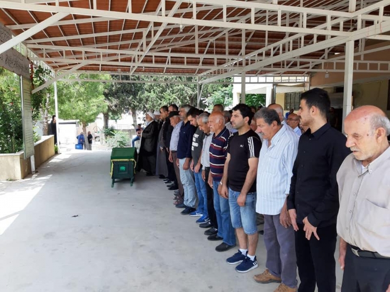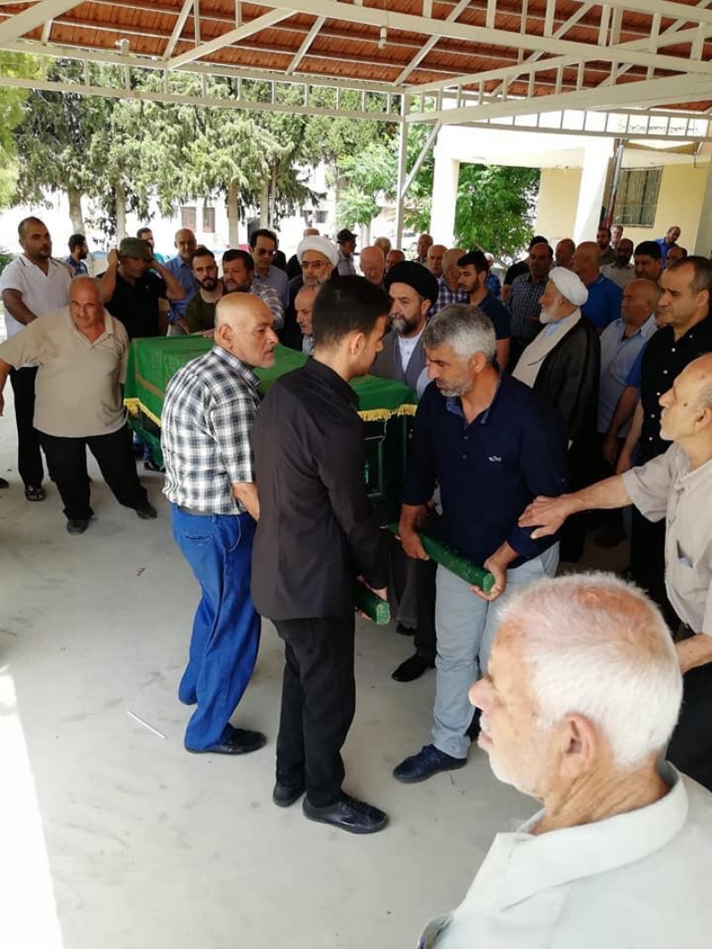 انطلق موكب التشيع من امام منزل الفقيد وصولاً الى جبانة البلدة حيث ام الصلاة على جثمانه الطاهر امام بلدة معركةفضيلة الشيخ احمد طراد قبل ان يوارى في الثرى ثم تقبل ال الفقيد العزاء من المشيعين.