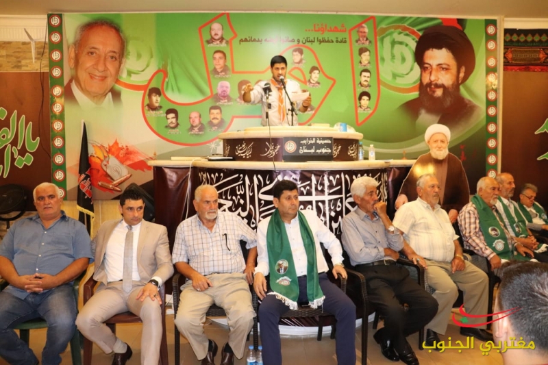 أحيت حركة أمل احتفالا حاشدا تخليدا للدم الزاكي لتضحيات شهداء البلدة الذين ارتفعوا في المواجهات ضد العدو الصهيوني وشهداء التصدي في حرب تموز والكوادر المجاهدين الراحلين في بلدة الخرايب بحضور عضو هيئة الرئاسة الدكتور خليل حمدان ومسؤول الشباب والرياضة المركزي الاخ الاستاذ علي ياسين ومسؤول المنظمات الشبابية في الحركة المهندس محمد عبيد وقيادات حركية وكشفية في المنطقة الخامسة وعلماء الدين وفعاليات بلدية واختيارية واجتماعية وذوي الشهداء وأهالي البلدة عصر اليوم السبت ٦ تموز ٢٠١٩ في النادي الحسيني.