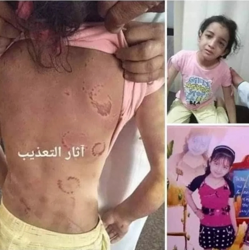 الطفلة هبة، التي لم تبلغ من العمر سوى 8 سنوات، من قرية الشعرا، التي تعرضت فيها لتعذيب وحشي من زوجة الأب التي دأبت على تعذيبها يوميًا بالكي بالنار والعض، أمام مسمع ومرأى من الأب الذي فقد الإحساس والرحمة، تاركًا ابنته لزوجته لتفعل بها ما تشاء.