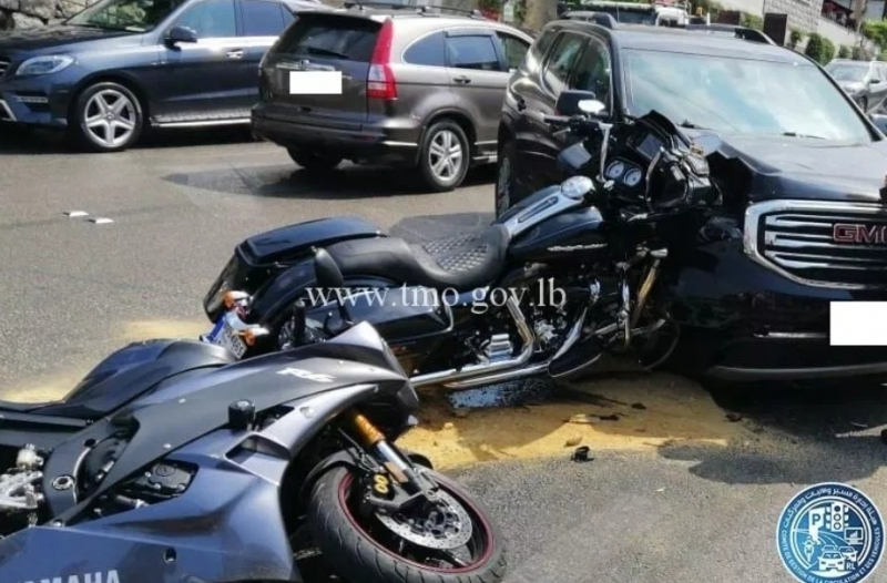 << جريح نتيجة تصادم بين مركبة ودراجتين ناريتين على طريق عام #جعيتا و #حركة_المرور كثيفة في المحلة