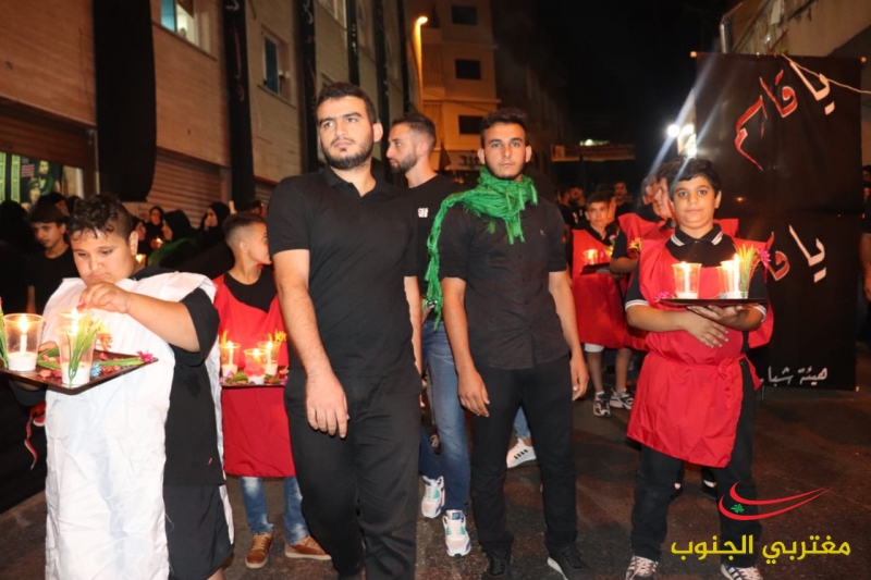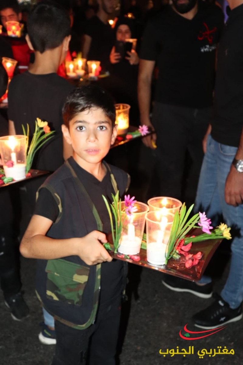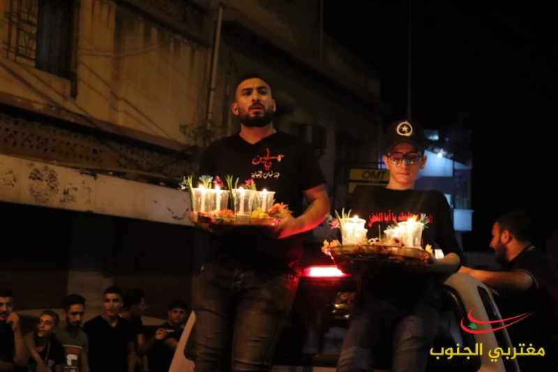 نظمت هيئة شباب الشهابية مسيرة شموع حاشدة في بلدة الشهابية في ليلة الثامن من محرم ليلة استشهاد القاسم ابن الحسن (ع)