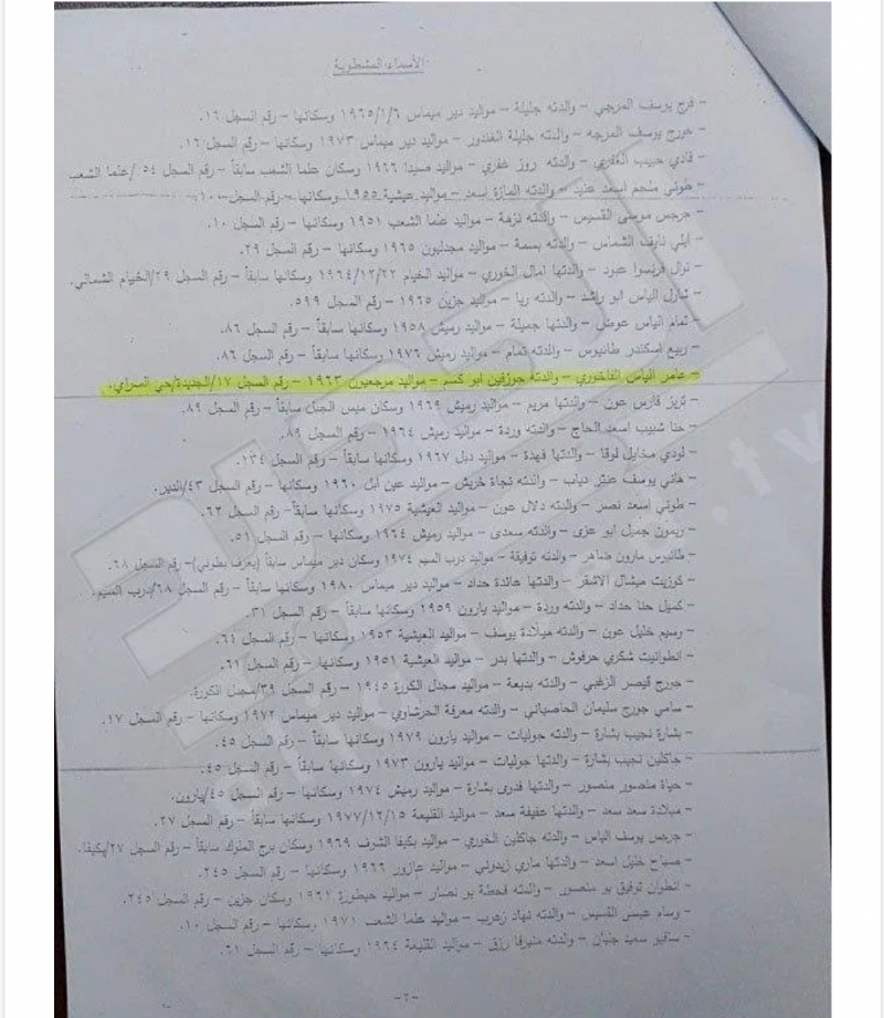 حصلت “الجديد” على وثيقة تتضمّن أسماء ستّين عميلاً للعدوّ الإسرائيلي يجري العمل على تنظيف ملفّاتهم. وكانت قناة “المنار” قد أشارت الى أنّ “هناك في الدولة من يعمل على تنظيف ملفات ستين عميلاً للعدوّ”.