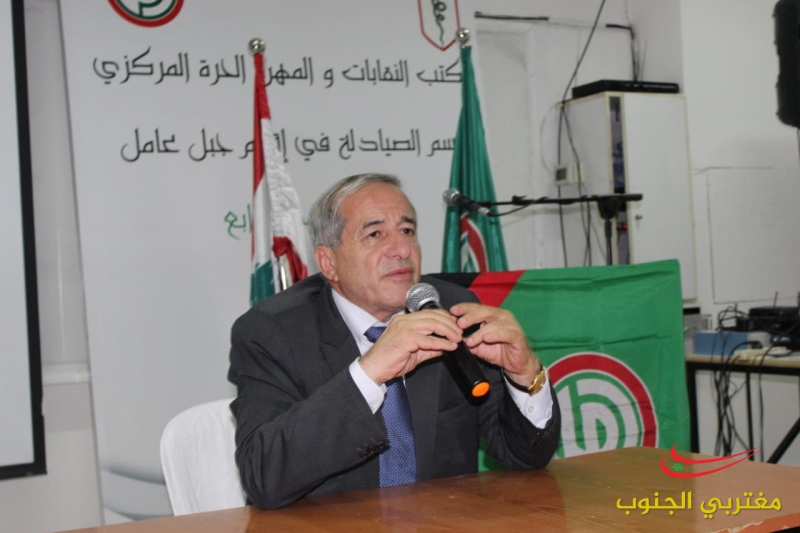 عقد قسم الصيادلة المركزي في مكتب النقابات والمهن الحرة يومه العلمي الرابع في اقليم جبل عامل في مبنى كلية العلوم في الجامعة اللبنانية شعبة صور و حضر الإفتتاح كل من مسؤول المهن الحرة في الحركة الحاج المهندس مصطفى فواز و المسؤول التنظيمي لإقليم جبل عامل الحاج المهندس علي اسماعيل و نقيب صيادلة لبنان الدكتور غسان الأمين و أعضاء من مجلس نقابة صيادلة سوريا ضم الدكتور نبيل القصير و الدكتور حسين العبدلله و الدكتور فراس بركات و أعضاء مجلس نقابة صيادلة لبنان و مسؤول المهن في اقليم جبل عامل المهندس أحمد عباس ووفد من الجمعية الاسلامية للصيادلة .القى كلمة نقابة صيادلة سوريا الدكتور نبيل القصير تحدث فيها واقع مهنة الصيدلة في سوريا وعودة القطاع الصيدلي الى عمله و عودة المعامل للانتاج والتصدير وتحدث عن انتصار سوريا وعودة الحياة الطبيعية لأسواقها و القى النقيب غسان الأمين عن دور الصيادلة و رعاية الأخ الرئيس نبيه بري لهذه المهنة الإنسانية و دوره في اصدار القوانين التي طورت الصيدلة و القى كلمة حركة أمل رئيس مكتب المهن الحرة المهندس مصطفى فواز و تحدث