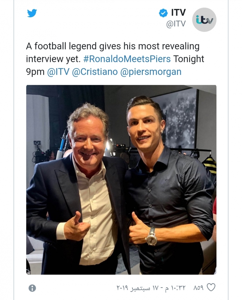 حلَ النجم البرتغالي كريستيانو رونالدو ضيفًا على برنامج “Good Morning Britain” الشهير في حلقة أذيعت مساء أمس الثلاثاء عبر قناة “ITV” البريطانية والتي لاقت إقبالًا غير مسبوق، خاصة وأن المًقدّم هو بيرس مورغان أحد أفضل الإعلاميين الإنجليز ورئيس تحرير صحيفة “ديلي ميرور” السابق.