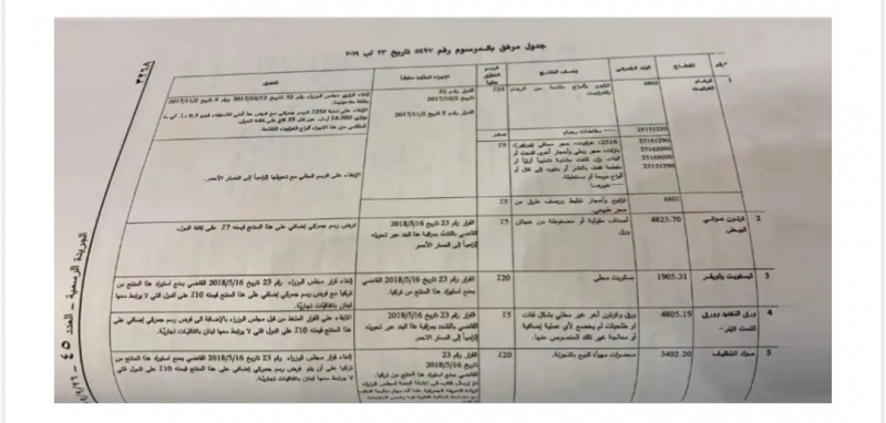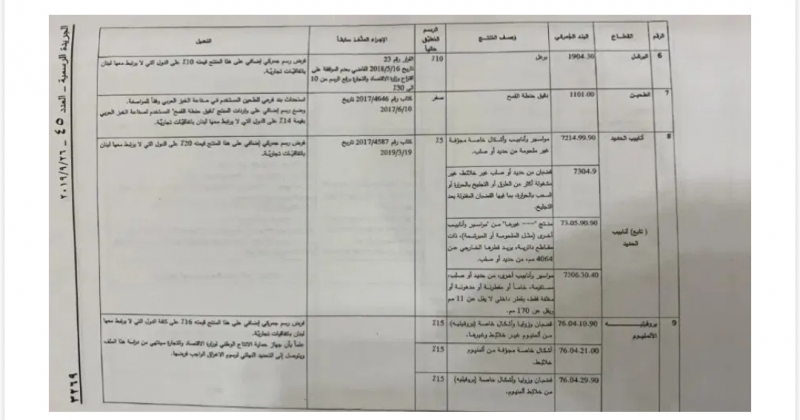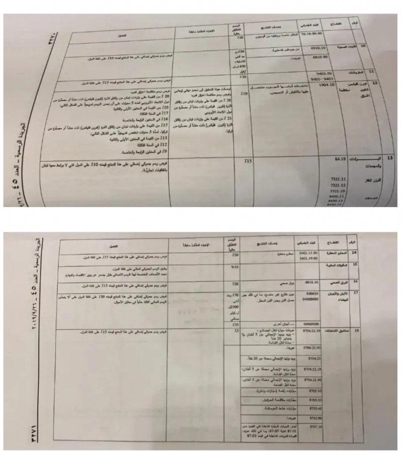 وفي ما يلي نص المرسوم وجداول البضائع التي تشملها الرسوم الإضافية: