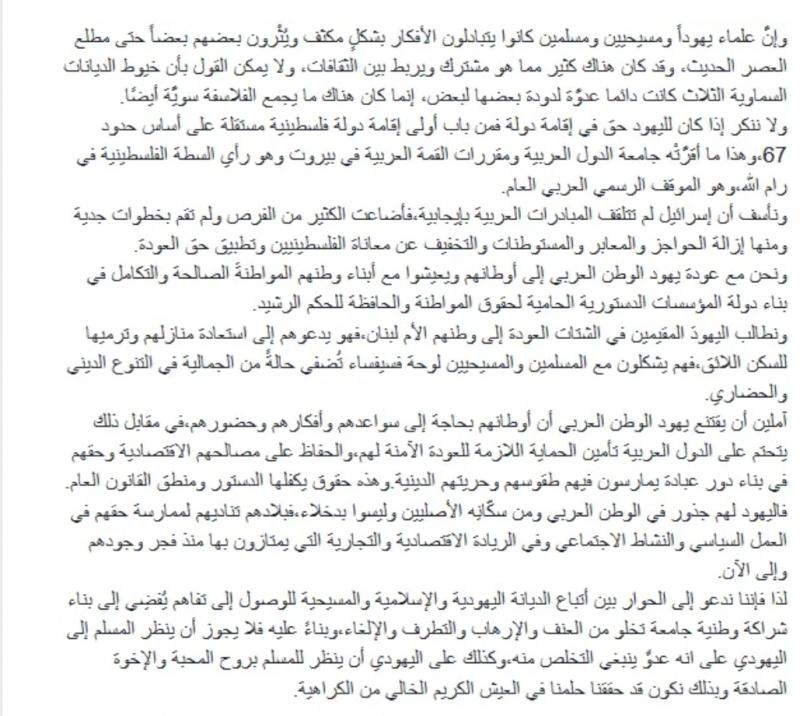 تتابع الصحيفة: “نحن لا ننكر حقوق اليهود في أن يكون لهم بلد”، قال الشيخ حامد، مستشهدا بلطف النبي محمد تجاه اليهود. لكنه كان حريصًا على إضافة أنه “يجب أن يكون للفلسطينيين أراضيهم وفقًا لحدود 1967″. وفي هذا السياق، أشادت مذيعة الأخبار السعودية في دبي سكينة مشايخ بـ”رجل مؤمن قادم من دولة يحكمها حزب الله وهو يتحدث بكل شجاعة” في وقت نرى فيه المسؤولين اللبنانيين يخرجون فجأة من اجتماع في سان فرانسيسكو عندما علموا أن مضيفيهم من اليهود”.