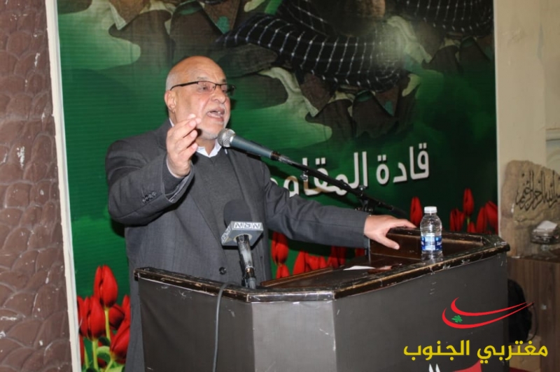 ثم القى حمدان كلمة حركة أمل فأكد ان خيار المقاومة هو الخيار الذي يمكن ان يراهن عليه وهو خيار الإمام المغيب السيد موسى الصدر الذي انتج تحريراً بفعل الشهداء الأبرار الذين انطلقو من خلفية فكرية ورؤية حركية ان الأرض تُحمى بالجهاد والكرامات بالتضحيات واسرائيل شر مطلق
