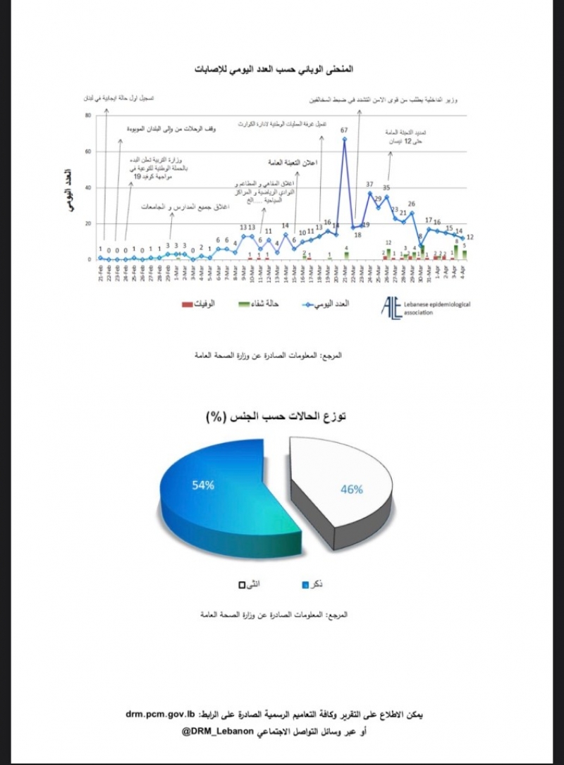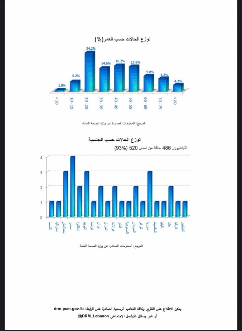 أصدرت غرفة العمليات الوطنية لإدارة الكوارث تقريرها اليومي المتعلق بانتشار فيروس كورونا في لبنان. وأعلن التقرير ارتفاع عدد الاصابات بالفيروس الى 520 بعد تسجيل 12 حالة جديدة، موضحا أن عدد الوفيات بلغ 17 فيما حالات الشفاء 50. وبالنسبة لعدد الفحوصات المخبرية، أوضح التقرير أن عددها وصل الى 9022