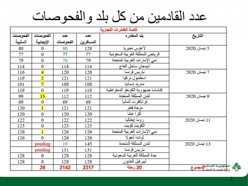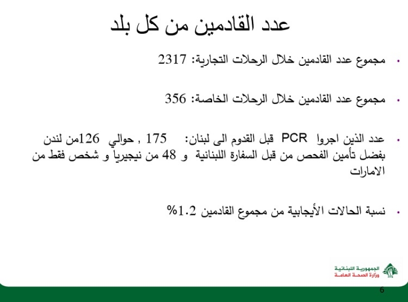 وزارة الصحة تعلن تفاصيل حالات الكورونا عند المغتربين العائدين