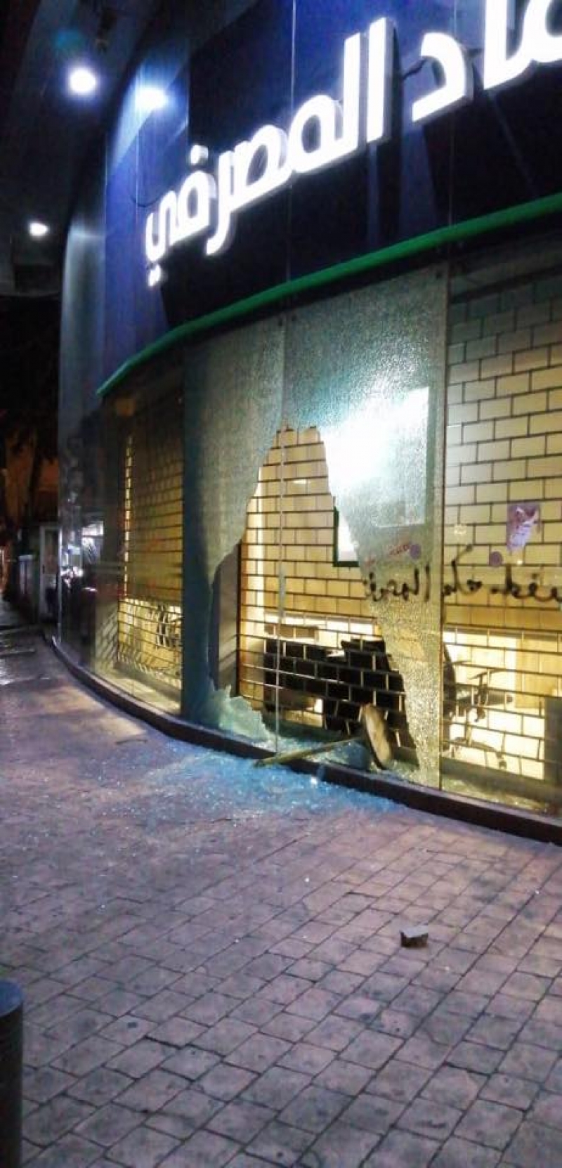 وقامت مجموعة من المتظاهرين بتكسير واجهة الإعتماد المصرفي في شارع رياض الصلح بطرابلس، فيما قام آخرون بتكسير واجهة البنك اللبناني الفرنسي في ساحة النور.