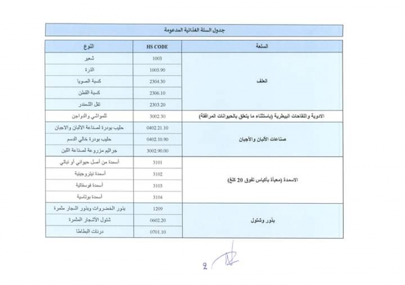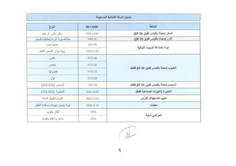 نشر وزير الاقتصاد في تغريدة عبر تويتر جدول سلع #السلة_الغذائية_المدعومة: