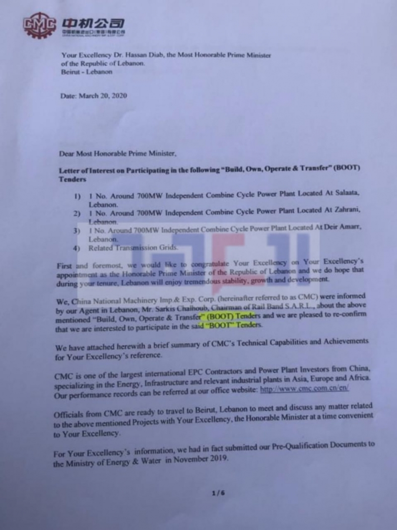 -مشروع لتنفيذ خطة الكهرباء على طريقة الـbot من ألفها الى يائها. المطلوب من الدولة فقط اختيار أي خطة تريدها والصين مستعدة لتنفيذ كافة المشاريع المتعلّقة بها. وفق شلهوب فإنّ تنفيذ خطة الكهرباء يحتاج ما بين مليار دولار الى مليار و300 مليون دولار، وكل هذه الأرقام وأكثر منها تبدي الصين استعدادها لتمويلها. فالشركات الصينية التابعة للدولة الصينية تتعهّد بتمويل وإنجاز كافة المشاريع، وهي تحتاج ما يقارب الـ28 شهراً للانتهاء من تنفيذ مشروع خطة الكهرباء في لبنان. وفي هذه النقطة يتوسّع شلهوب الشاهد على الكثير من النقاشات والمباحثات التي جرت سابقاً. الصين عرضت على لبنان أنه وفي حال لا يريد "توربينات" صينية لتوليد الطاقة، -مع أنها توفر في كل محطة 100 مليون دولار وهذه التوربينات مكفولة-، تستعد الصين لتأمين "التوربينات" من شركة "سيمنز" الألمانية، أو "جنرال الكتريك" انطلاقاً من الاتفاقيات التي تعقدها مع هذه الشركات. لكن المشكلة في موضوع الطاقة الكهربائية -يوضح شلهوب- تكمن في أن لبنان تارةً يبدي استعداده للتعاون مع شركات معينة، وتارةً يتذرع بأنه لا يملك الأموال للتمويل. وفق شلهوب، فإنّ الصين لا تطالب الدولة اللبنانية بالدفع اليوم. وهنا يبدي شلهوب استغرابه كيف أن لبنان يتوجّه في بعض المشاريع الى شركات غربية ويرفض عروضا من الصين، في الوقت الذي رفضت فيه "سيمنز" تمويل لبنان مشددة على ضرورة دفع "اليوروبوند" أولاً. تماماً كما رفضت شركة "جنرال الكتريك" هذا الأمر.