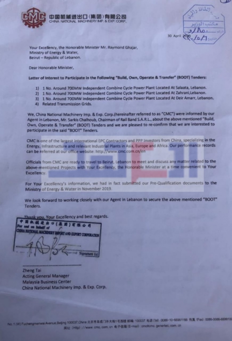 وفي الختام، يقول شلهوب إن الوفد الصيني مستعد للإتيان الى لبنان عبر طائرة خاصة مع مكتوب من البنك لتمويل المشاريع في لبنان لمجرد أخذ كلمة الـ"ok" من الحكومة اللبنانية.