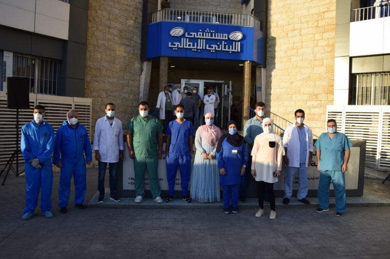 تداعت مختلف الجمعيات والهيئات والمراكز الصحية الى وقفة تضامنية مع مستشفى اللبناني الايطالي في صور تكريما ودعما للطواقم الطبية والتمريضية والإسعافية بعد قيامها بواجبها الإنساني والرعائي الصحي في مواجهة جائحة كورونا. حيث شارك في هذه الوقفة التضامنية التكريمية جمعية الصليب الأحمر اللبناني، الدفاع المدني في وزارة الداخلية، جمعية الرسالة للإسعاف الصحي، الهيئة الصحية الإسلامية، فوج الإطفاء - مركز البص، جمعية الشفاء، وبحضور رئيس طبابة قضاء صور في وزارة الصحة العامة الدكتور وسام غزال، مدير وحدة الحد من المخاطر والكوارث في الصليب الأحمر اللبناني DRR قاسم شعلان، وجمع من الأطباء والممرضين والمسعفين والطاقم الإداري والموظفين والعاملين الصحيين.. وكانت مناسبة عُزف فيها النشيد الوطني اللبناني تبادل بعدها المتضامنون التحية مع الأطباء والممرضين والمسعفين. كما كانت كلمة ترحيبية باسم المستشفى ألقاها رئيس قسم الجراحة العامة الدكتور ابراهيم فرج تقدّم فيها بالشكر والإمتنان لوزارة الصحة العامة وممثلها في قضاء صور الدكتور وسام غزال على تعاونهم ومؤازرتهم للمستشفى في مواجهة أزمة كورونا. كما أثنى الدكتور فرج على روح التضامن الوثيق والدعم المتبادل القائم ما بين المستشفى وكافة الجمعيات والمراكز الصحية في المنطقة والذي يصبّ في خدمة الحفاظ على الصحة والسلامة العامة للمواطنين. كما تخلل اللقاء تصفيقاً من قبل المتضامنين والمحبين على أنغام نشيد "سوف نبقى هنا...".