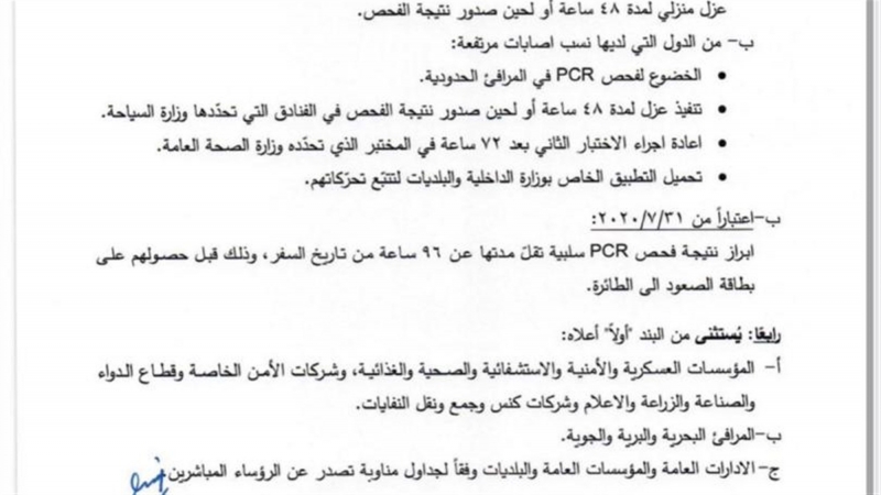 أصدر وزير الداخلية والبلديات "محمد فهمي" مذكرة تضمّنت تفاصيل الإجراءات التي سيتم العمل بها اعتبارا من الخميس 30 تموز لمنع انتشار فيروس كورونا.