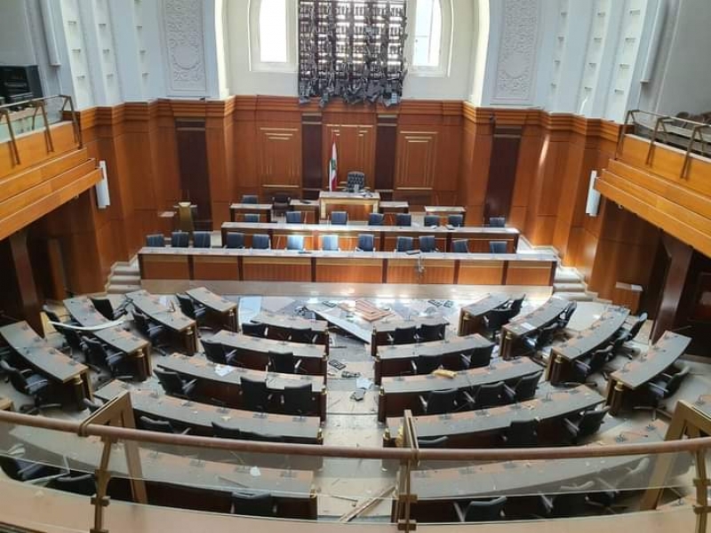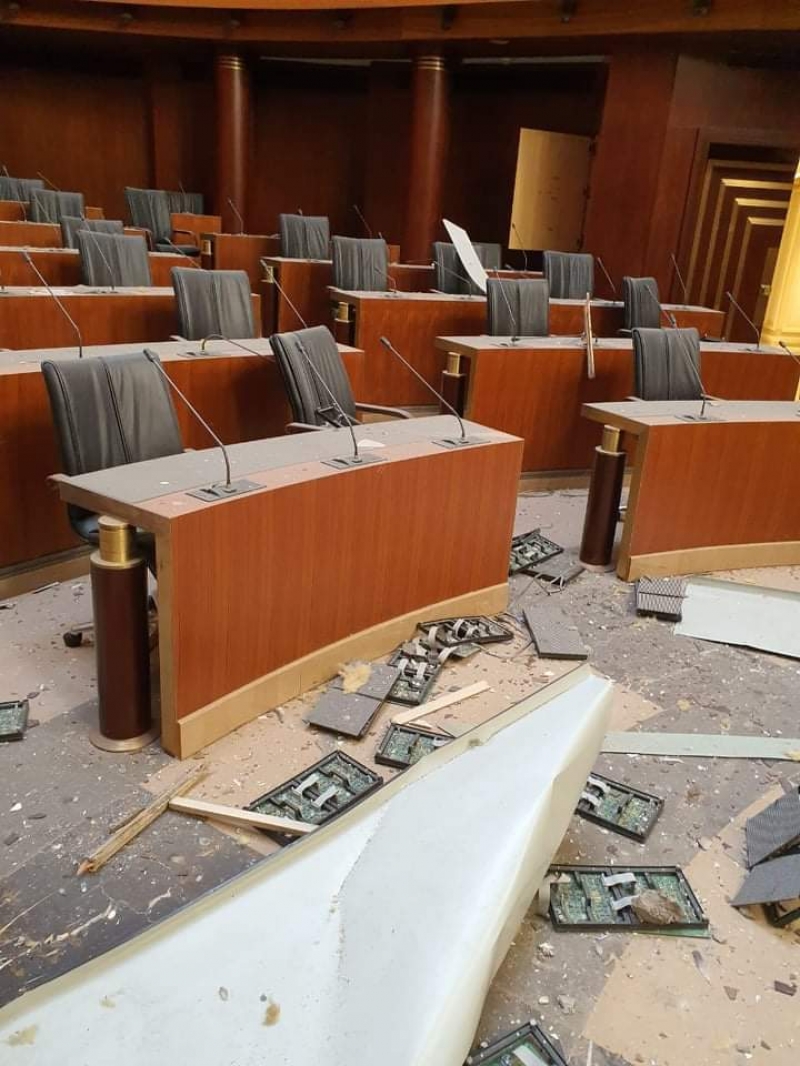 بالصور: دمار كبير في مقر مجلس النواب اللبناني في ساحة النجمة !