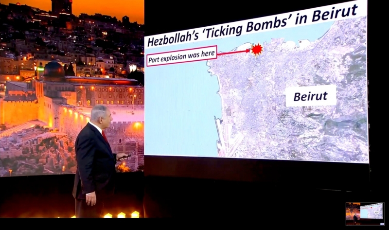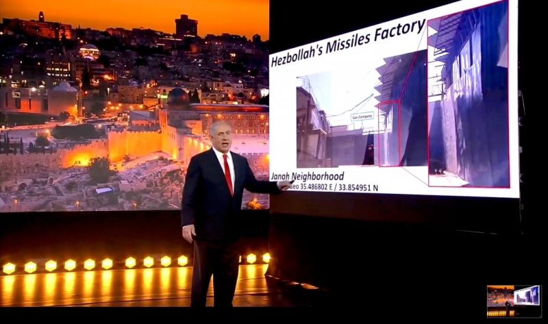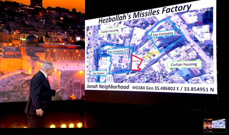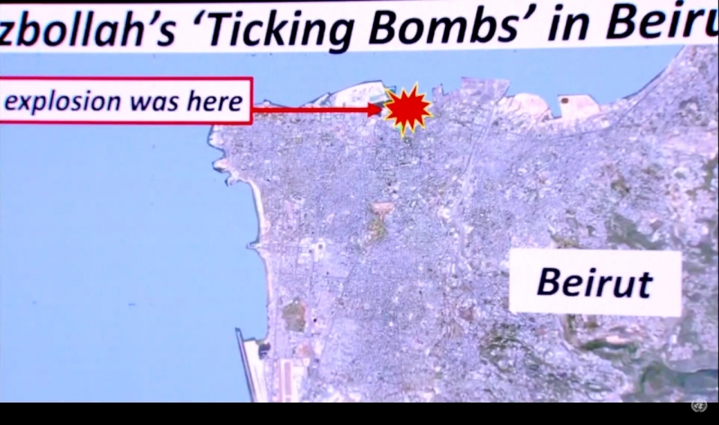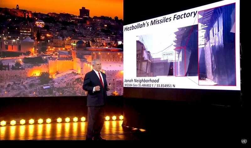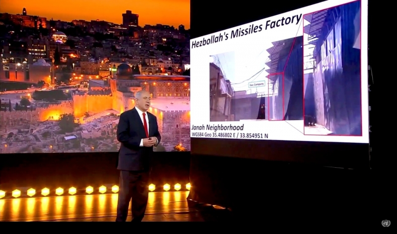 حذّر رئيس وزراء العدو الإسرائيلي بنيامين #نتنياهو من احتمال وقوع انفجار آخر في لبنان، وتحديداً في منطقة "الجناح" في بيروت، بسبب ما أسماه "أسلحة #حزب الله السرّية". وعرض هذه الصور خلال كلمته للأمم المتحدة، تُبيّن مزاعمه.