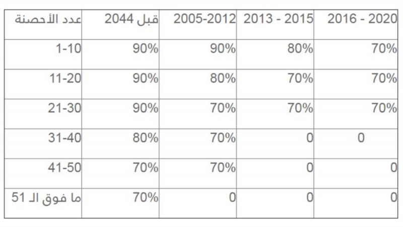 وتجدون في الجدول اعلاه نسب الإعفاء للمركبات الآلية الخصوصية – الدراجات النارية.