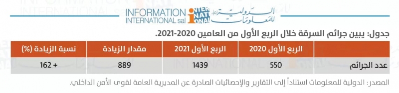 ولحظ التقرير أنّ "جرائم السرقة خلال الفترة المذكورة سابقاً سجلت ارتفاعاً كبيراً بنسبة 162%. أي أنّ هناك 16 عملية سرقة يومياً".