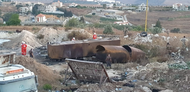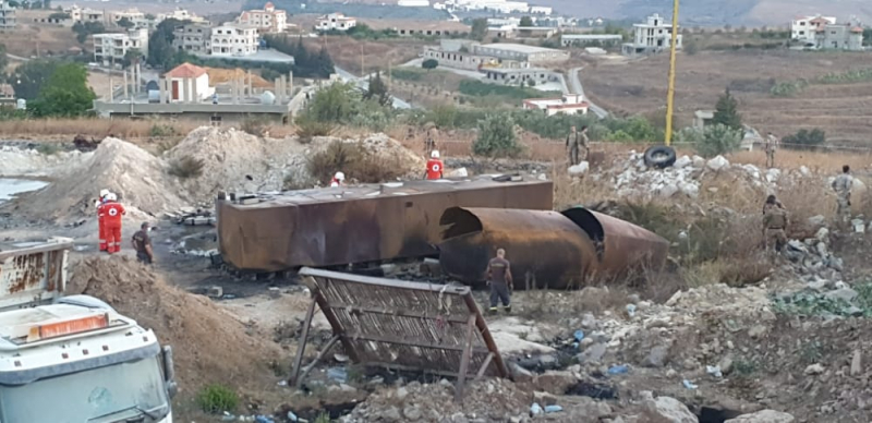 وبعد مغادرة الجيش المكان ليلا حصل تدافع كبير من قبل ابناء المنطقة لتعبئة ما تبقى من البنزين في الخزان، حيث حصل الانفجار، وفق ما أفادت الوكالة الوطنية للإعلام.
