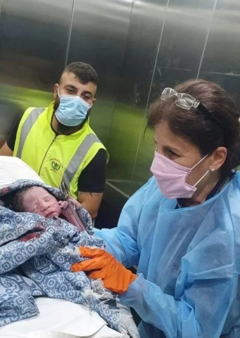 اجرت القابلة القانونية ريما البندر عملية ولادة طبيعية داخل احدى سيارات الاسعاف التابعة لجمعية "الرسالة".