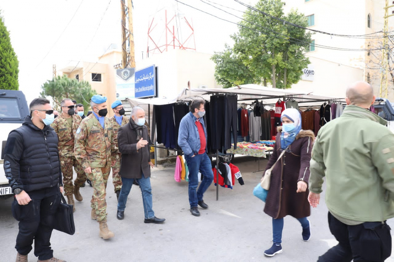 ثم جال بزي والجنرال ستيكا في السوق الشعبي التاريخي لمدينة بنت جبيل.