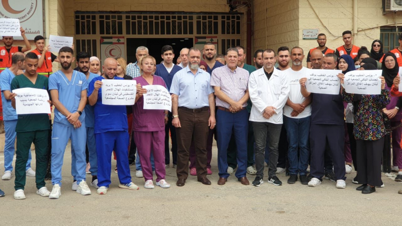 مستشفيات الهلال الأحمر تنظم وقفات احتجاجية رفضاً لإجراءات يونس الخطيب بحق الجمعية في لبنان