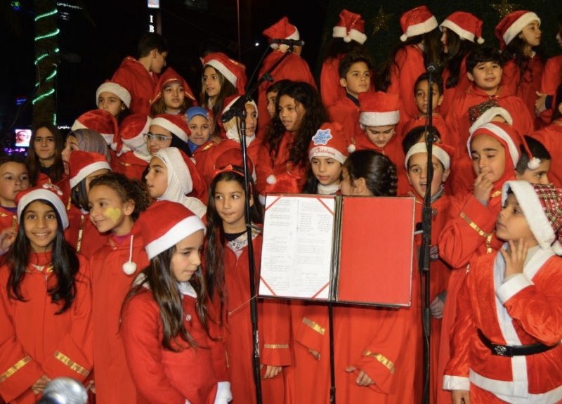 ثم كانت تراتيل الميلاد بأداء غنائي لكورال مدرسة قدموس تزامناً مع الألعاب النارية.