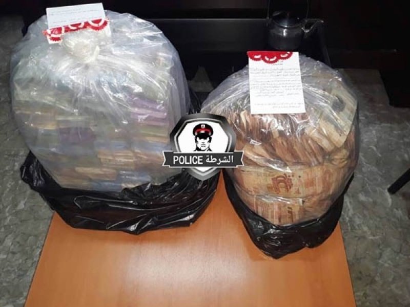 وبتحري المنزل بأمر من القضاء عُثر على ثمانية عشر كيس نايلون اسود وبرميل بلاستيك لون ازرق بضمن الاكياس والبرميل اوراق نقدية سورية من مختلف الفئات ، وبجرد وإحصاء هذه المبالغ تبين انها (18.281.000) ل.س (ثمانية عشر مليون ومئتان وواحد وثمانون الف ليرة سورية) بالاضافة لاوراق نقدية من العملات العربية والاجنبية (امريكية – عراقية – لبنانية – اماراتية – سعودية).