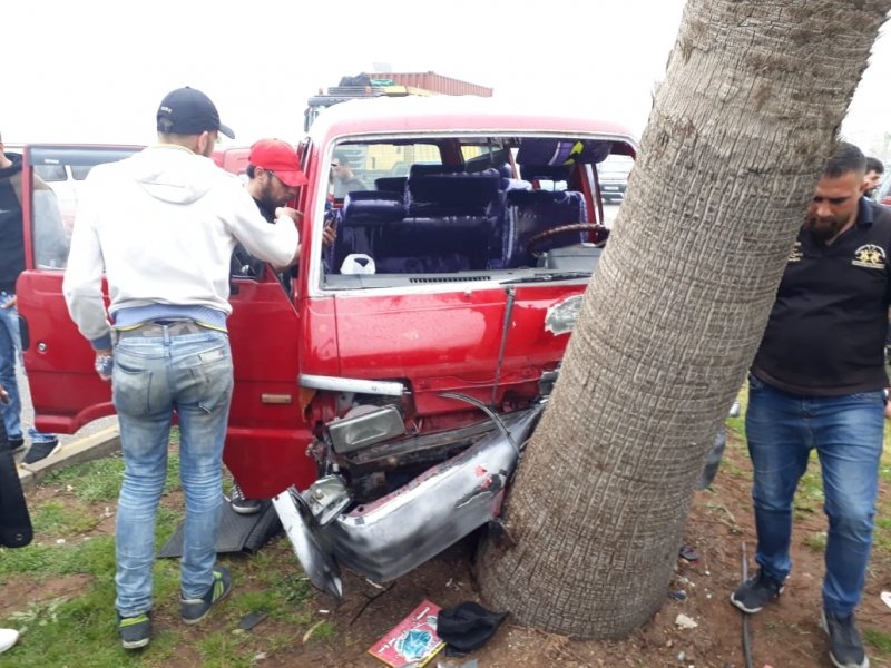 اصطدام حافلة لنقل الركاب بشجرة صيدا طريق البحري بإتجاه الجنوب أسفر عنه خمس جرحى وتم نقل البعض منهم إلى مستشفيات المنطقة