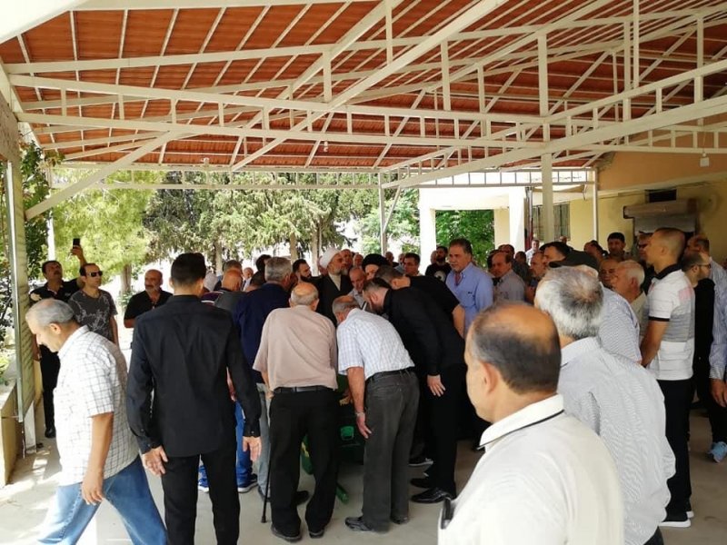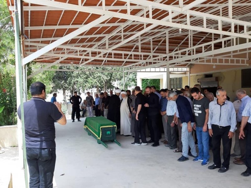 انطلق موكب التشيع من امام منزل الفقيد وصولاً الى جبانة البلدة حيث ام الصلاة على جثمانه الطاهر امام بلدة معركةفضيلة الشيخ احمد طراد قبل ان يوارى في الثرى ثم تقبل ال الفقيد العزاء من المشيعين.