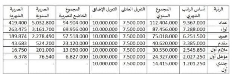 هكذا أصبحت رواتب العسكريين المتقاعدين بعد “الضريبة التصاعدية” !!