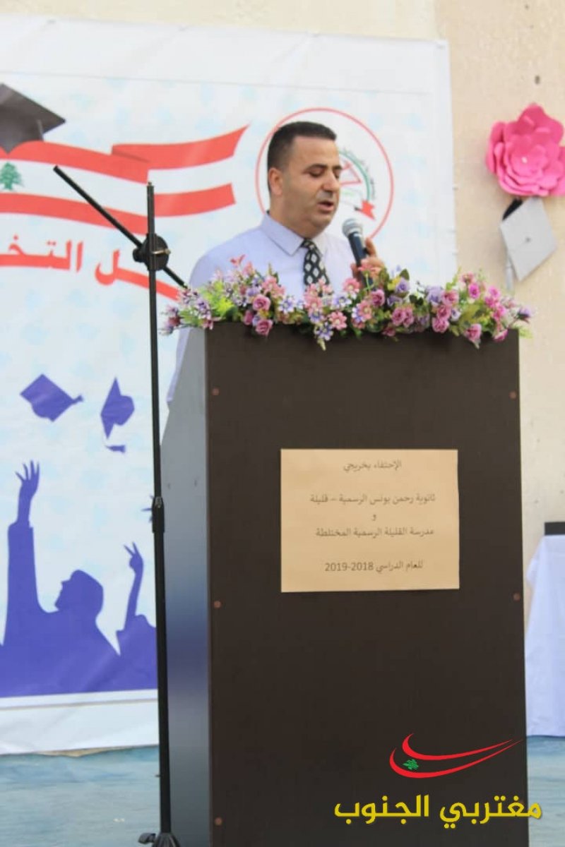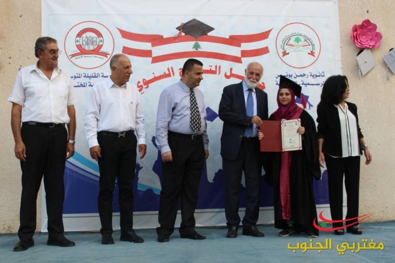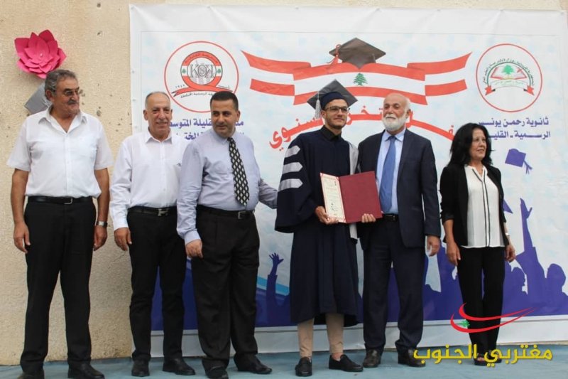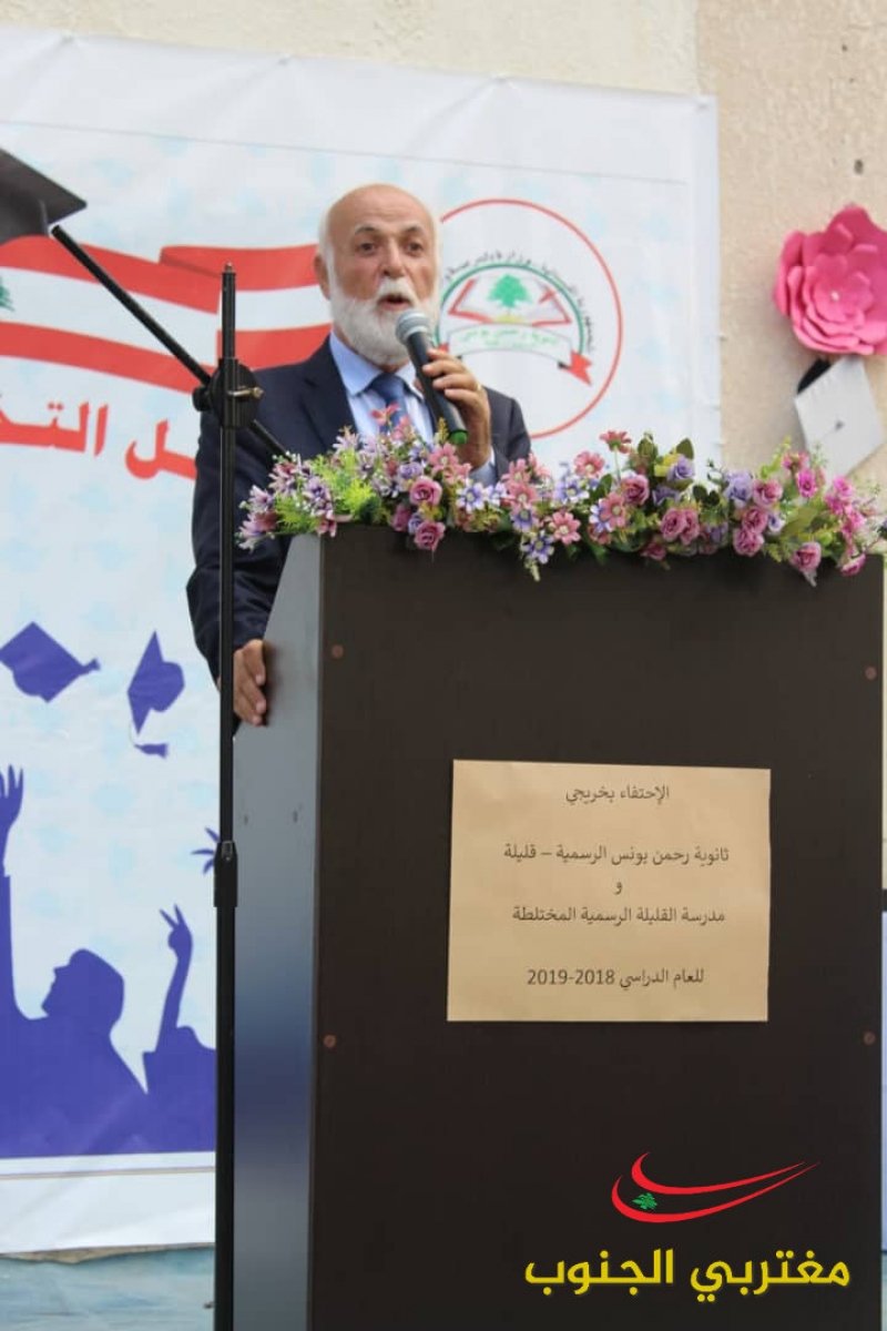 بمناسبة نجاح الطلاب في الشهادة الثانوية العامة والمتوسطة أقامت المدرسة المتوسطة الرسمية القليلة وثانوية الرحمن يونس احتفال برعاية نقيب الممثلين في لبنان الأستاذ نعمة بدوي وبدأ الاحتفال بتعريف من الأستاذة زينب بدوي وبالنشيدين النشيد اللبناني ونشيد المدرسة ومن ثم كانت كلمة للخريجة من الشهادة المتوسطة الرسمية الطالبة هديل سالم سالم بدرجة جيد جدا وأيضا للطالبة فاطمة كرشت فرع علوم الحياة بدرجة جيد جدا وبعدها كانت الكلمة الأستاذ حسين شبلي ومن ثم كانت لنقيب الممثلين في لبنان الأستاذ نعمة بدوي وتم تقدمة درع للاستاذ نعمة بدوي وتوزيع دروع للمتفوقين وبالختام تم توزيع الشهادات على الطلاب