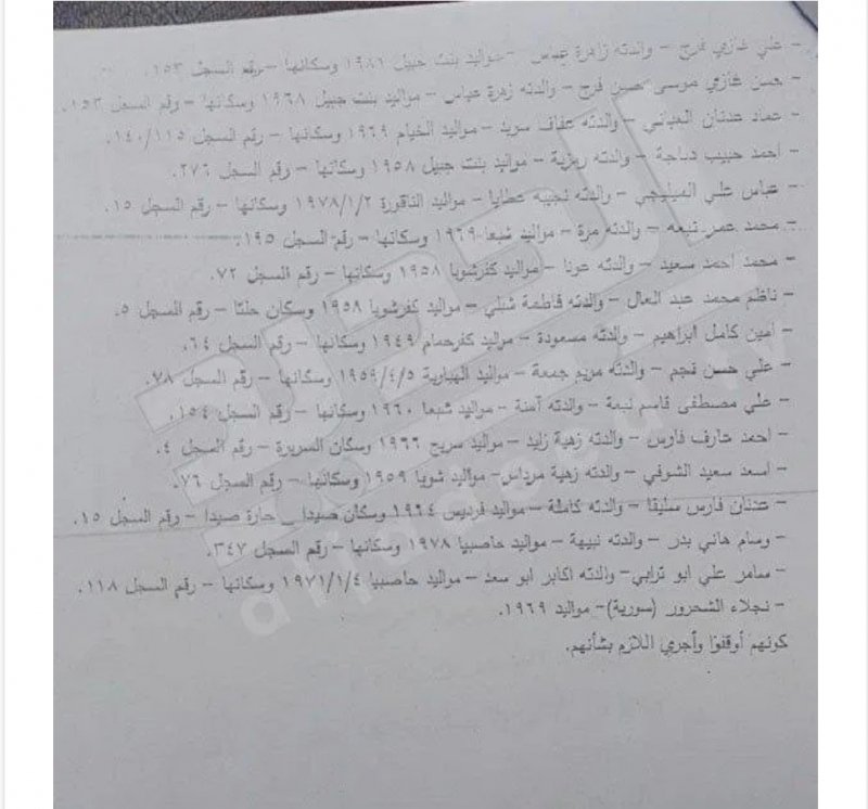 حصلت “الجديد” على وثيقة تتضمّن أسماء ستّين عميلاً للعدوّ الإسرائيلي يجري العمل على تنظيف ملفّاتهم. وكانت قناة “المنار” قد أشارت الى أنّ “هناك في الدولة من يعمل على تنظيف ملفات ستين عميلاً للعدوّ”.