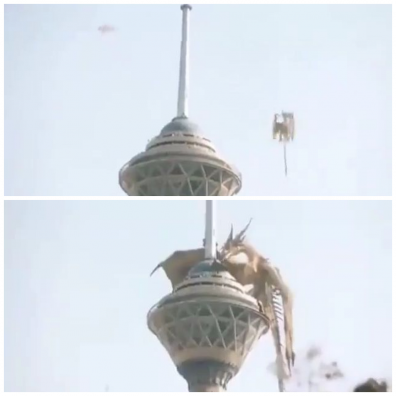 قام فريق ايراني فني بعمل عرض فائق التطور لتنانين تحوم فوق العاصمة الايرانية حيث تم تشغيل العرض المهيب بالاعتماد على شبكة الاتصالات فائقة السرعة، "5G"، ليبدو التنين وكأنه مخلوق حقيقي يحوم في سماء العاصمة طهران