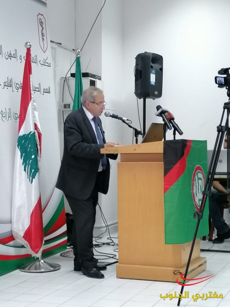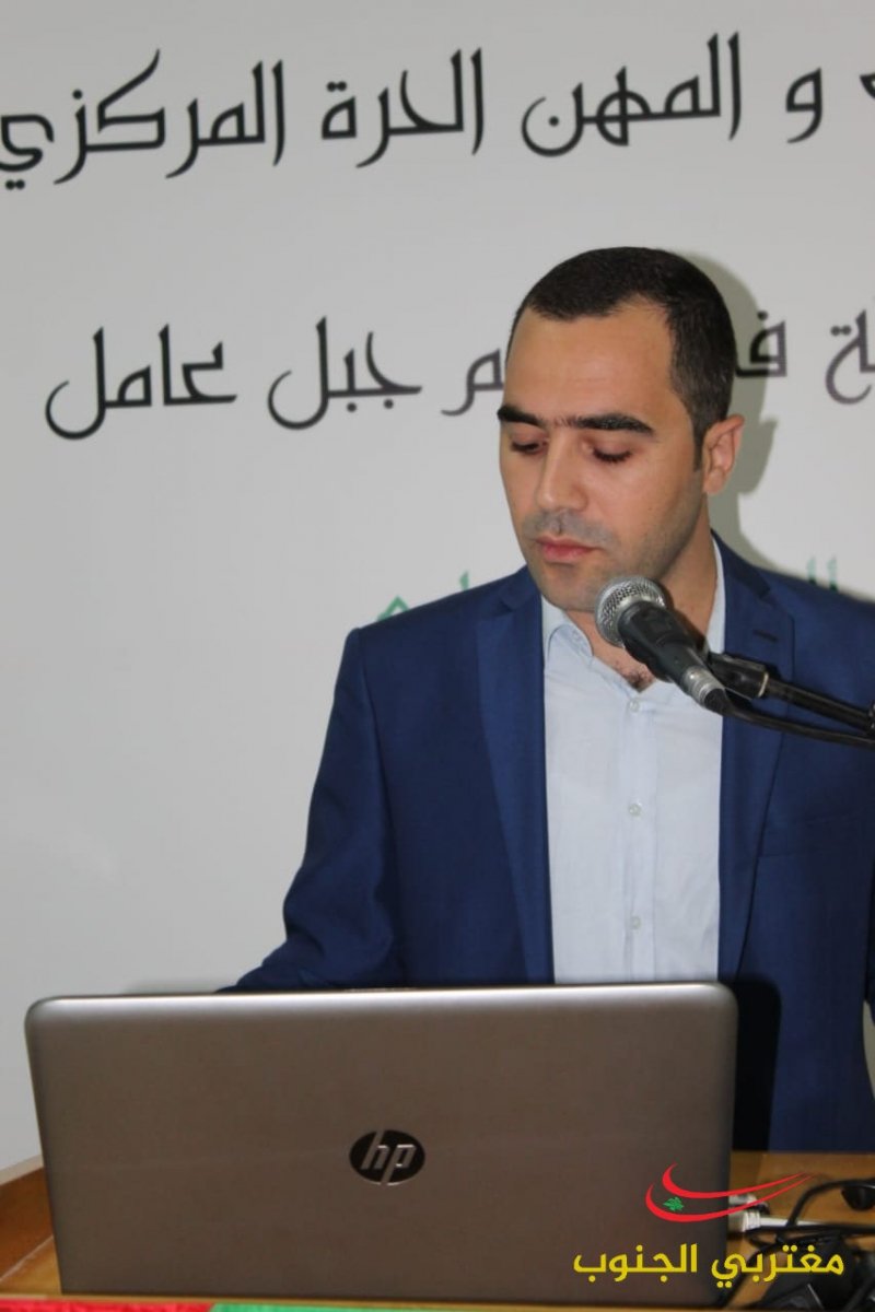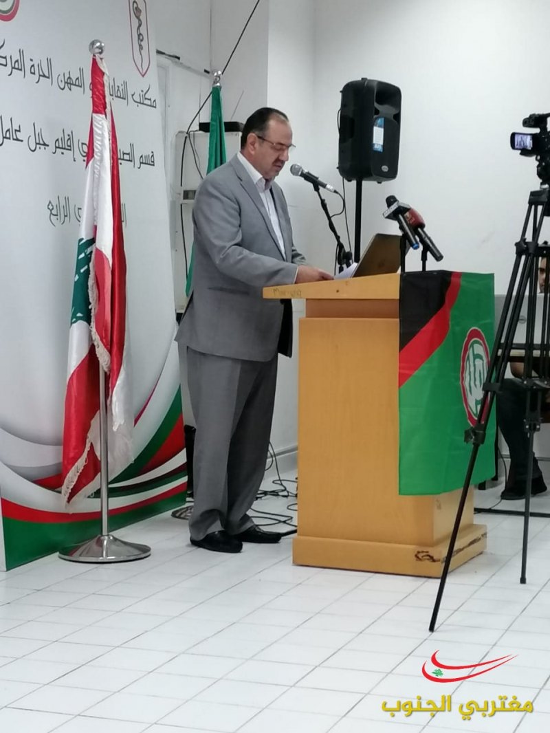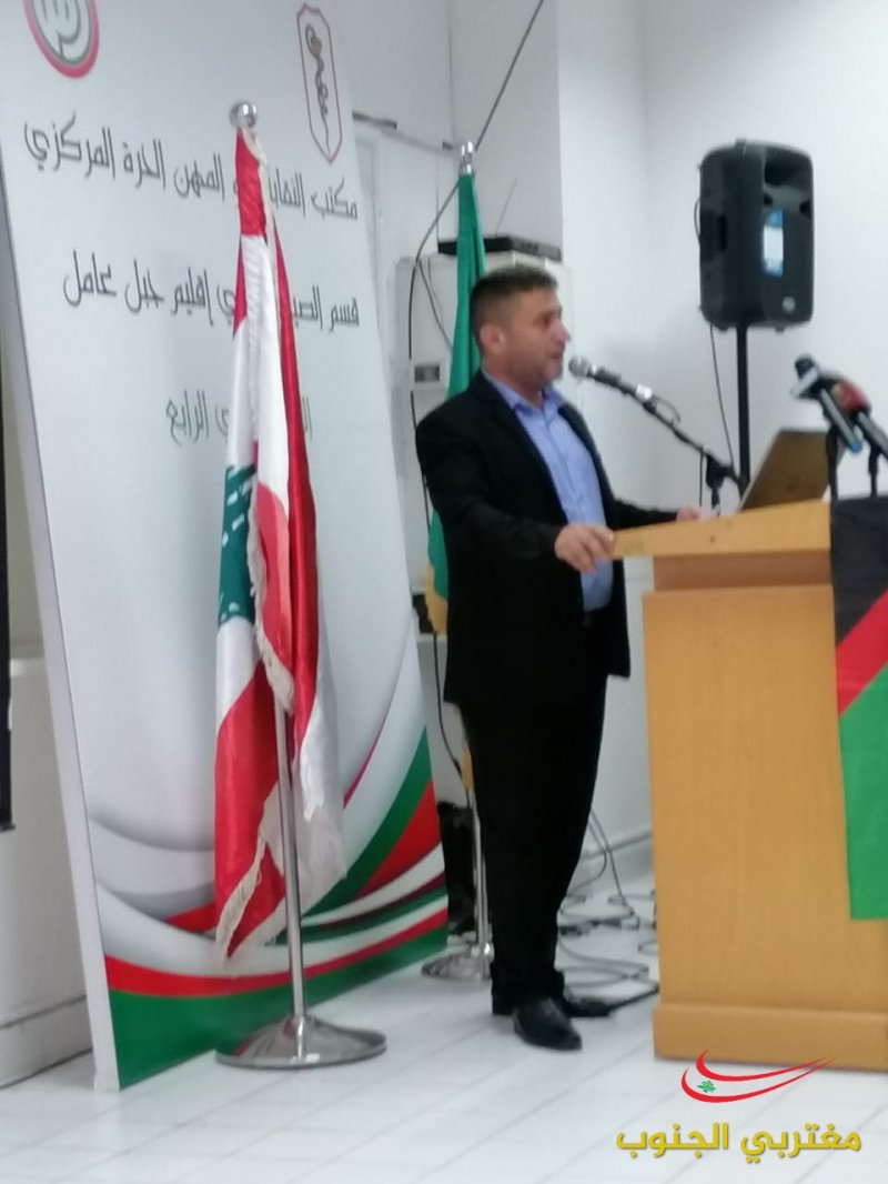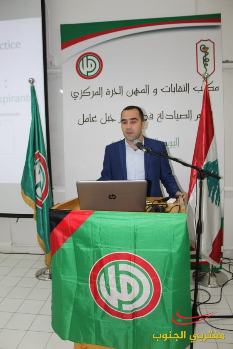 عقد قسم الصيادلة المركزي في مكتب النقابات والمهن الحرة يومه العلمي الرابع في اقليم جبل عامل في مبنى كلية العلوم في الجامعة اللبنانية شعبة صور و حضر الإفتتاح كل من مسؤول المهن الحرة في الحركة الحاج المهندس مصطفى فواز و المسؤول التنظيمي لإقليم جبل عامل الحاج المهندس علي اسماعيل و نقيب صيادلة لبنان الدكتور غسان الأمين و أعضاء من مجلس نقابة صيادلة سوريا ضم الدكتور نبيل القصير و الدكتور حسين العبدلله و الدكتور فراس بركات و أعضاء مجلس نقابة صيادلة لبنان و مسؤول المهن في اقليم جبل عامل المهندس أحمد عباس ووفد من الجمعية الاسلامية للصيادلة .القى كلمة نقابة صيادلة سوريا الدكتور نبيل القصير تحدث فيها واقع مهنة الصيدلة في سوريا وعودة القطاع الصيدلي الى عمله و عودة المعامل للانتاج والتصدير وتحدث عن انتصار سوريا وعودة الحياة الطبيعية لأسواقها و القى النقيب غسان الأمين عن دور الصيادلة و رعاية الأخ الرئيس نبيه بري لهذه المهنة الإنسانية و دوره في اصدار القوانين التي طورت الصيدلة و القى كلمة حركة أمل رئيس مكتب المهن الحرة المهندس مصطفى فواز و تحدث
