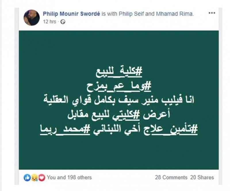 في خطوة انسانية لافتة، نشر الشاب “فيليب سيف” المنشور التالي: ياصور