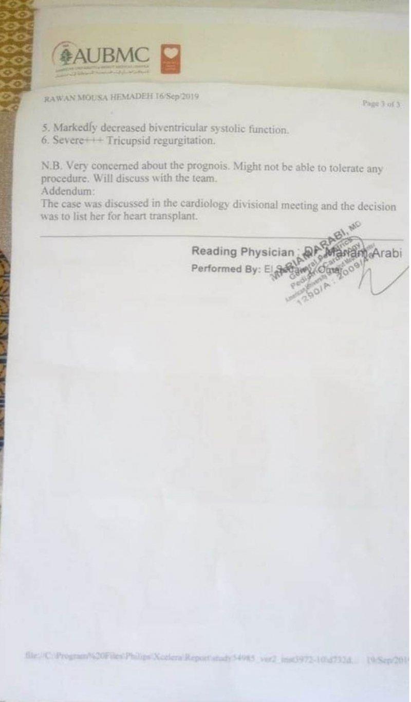 روان موسى حمادي من مدينة النبطية, بحاجة لعملية زراعة قلب..
