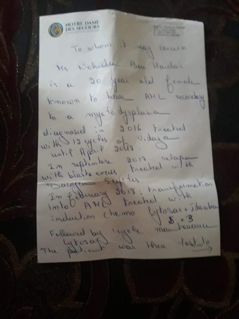 تناقلت عائلة الشابة "ناهدة أبو حيدر" (18 سنة) مناشدة أليمة لمساعدتهم في تأمين كلفة عملية طارئة. فناهدة، التي تعاني من سرطان الدم منذ 4 سنوات وتخضع لعلاجه الأليم في مستشفى سيدة المعونات في جبيل، بحاجة لعملية زرع نخاع عظم و المتبرع موجود، الا أن ما يحول دون ذلك هو عجزهم عن تأمين كلفة العملية التي بالكاد تبلغ ٢٦ الف دولار