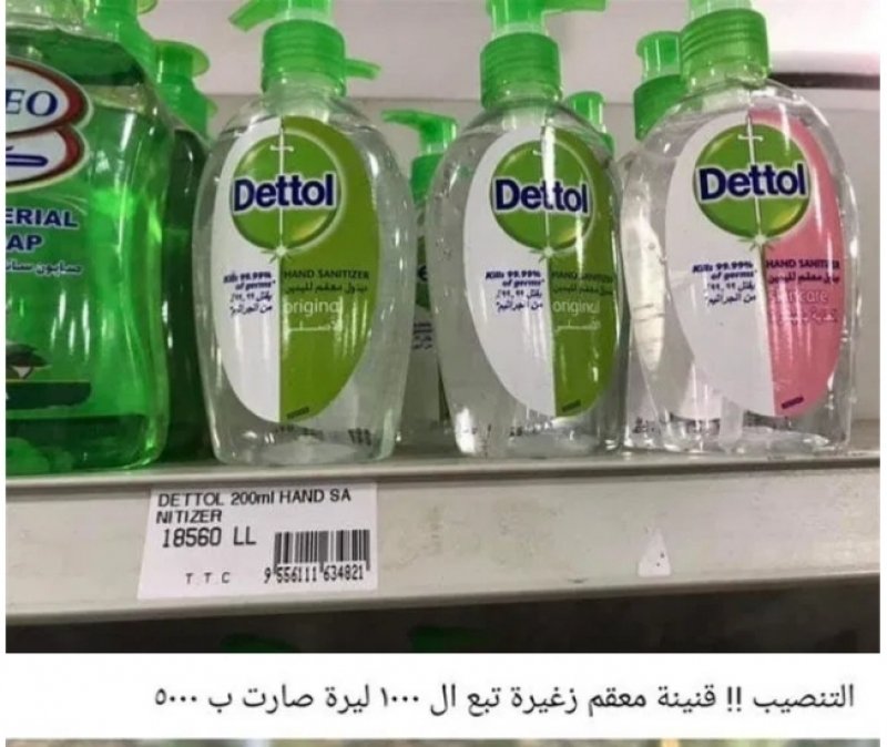 في حقبة غلاء المعيشة الفاحش وإنخفاض قدرة الشعب اللبناني الشرائية وإنعدام أخلاق التجار ووصول جشعهم إلى مستوى قياسي، نرى أن أدوات التعقيم الأساسية ارتفعت اسعارها بشكل جنوني في حين بلغ سعر قارورة الديتول 200 مل إلى 18560 ل.ل. وقارورة تعقيم اليدين الصغيرة من 1000 ل.ل. ليصبح سعرها 5000 ل.ل