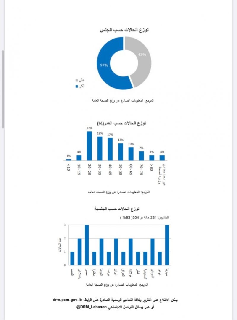 يمكن الاطلاع على التقرير وكافة التعاميم الرسمية الصادرة على الاربط: drm.pcm.gov.lb أو عبر وسائل التواصل الاجتماعي DRM_Lebanon@