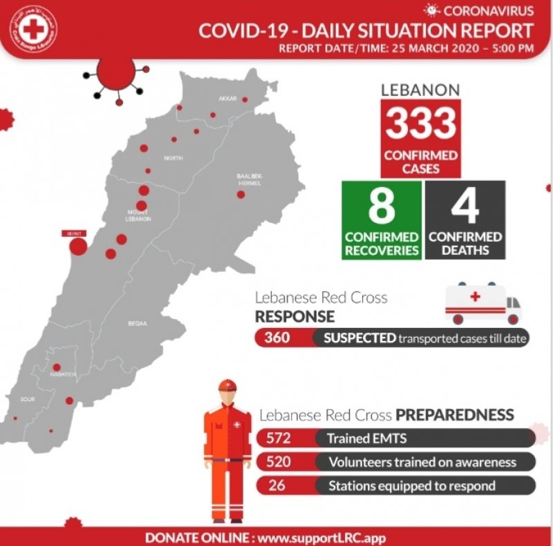 نشر الصليب الأحمر اللبناني في تغريدة على حسابه عبر "تويتر"، التقرير اليومي لفيروس "كورونا".