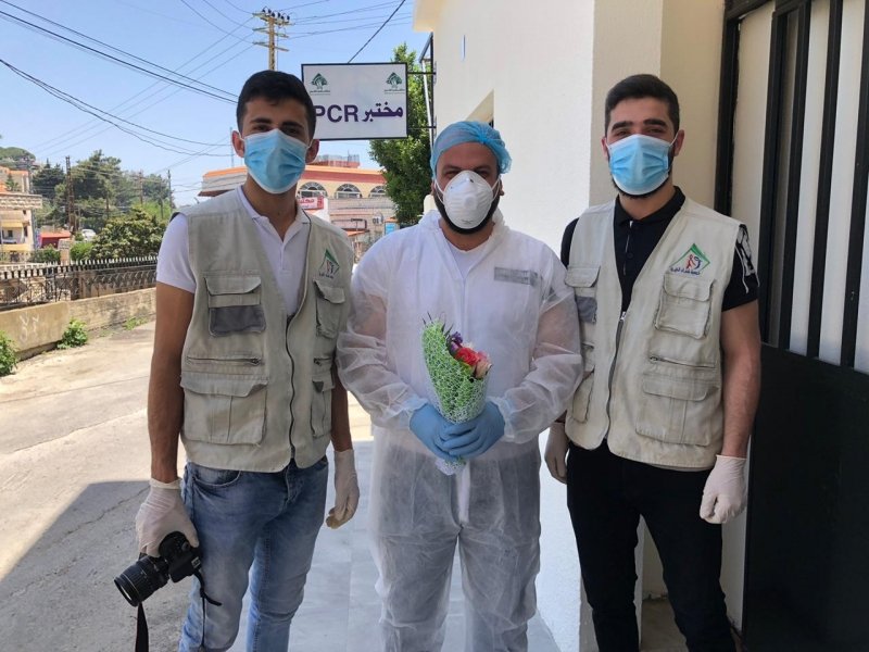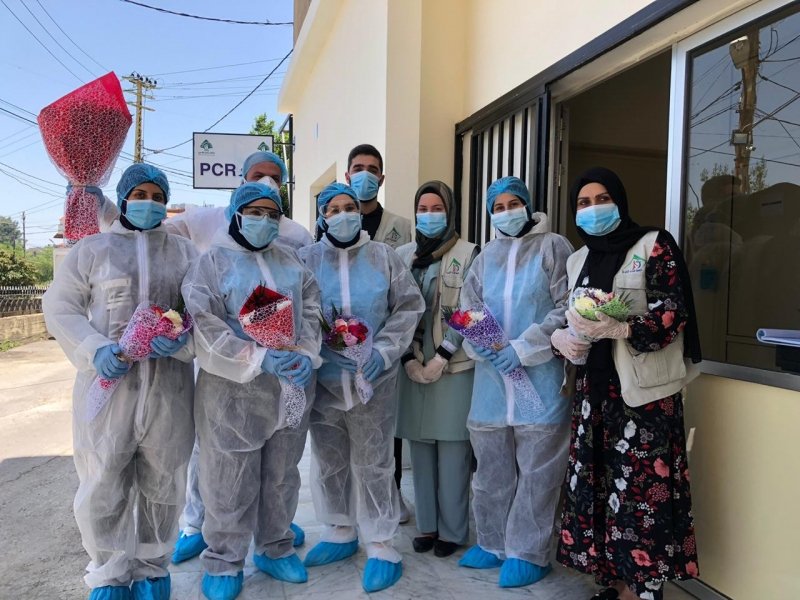 قامت جمعية شمران الخيرية بتقديم باقات من الورد الى ممرضي مختبر ال PCR في مستشفى تبنين الحكومة المتخصص لاجراء فحوصات (الكورونا )..