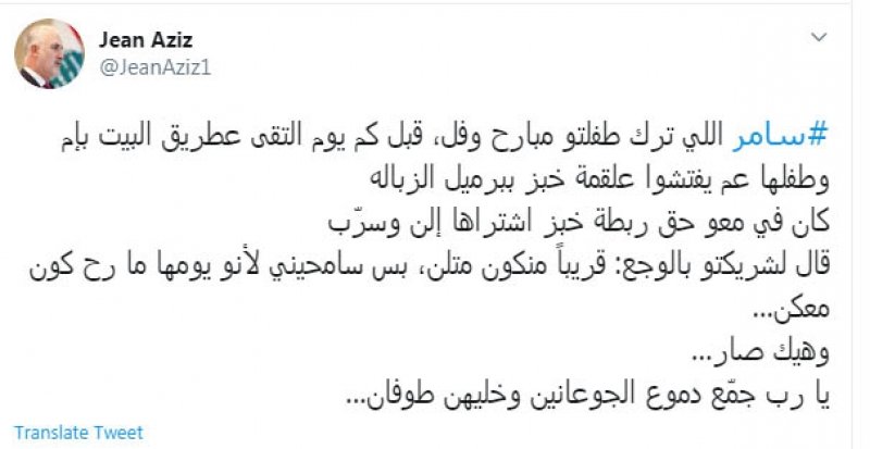 نشر الإعلامي جان عزيز على صفحته عبر تويتر عن الشاب الذي