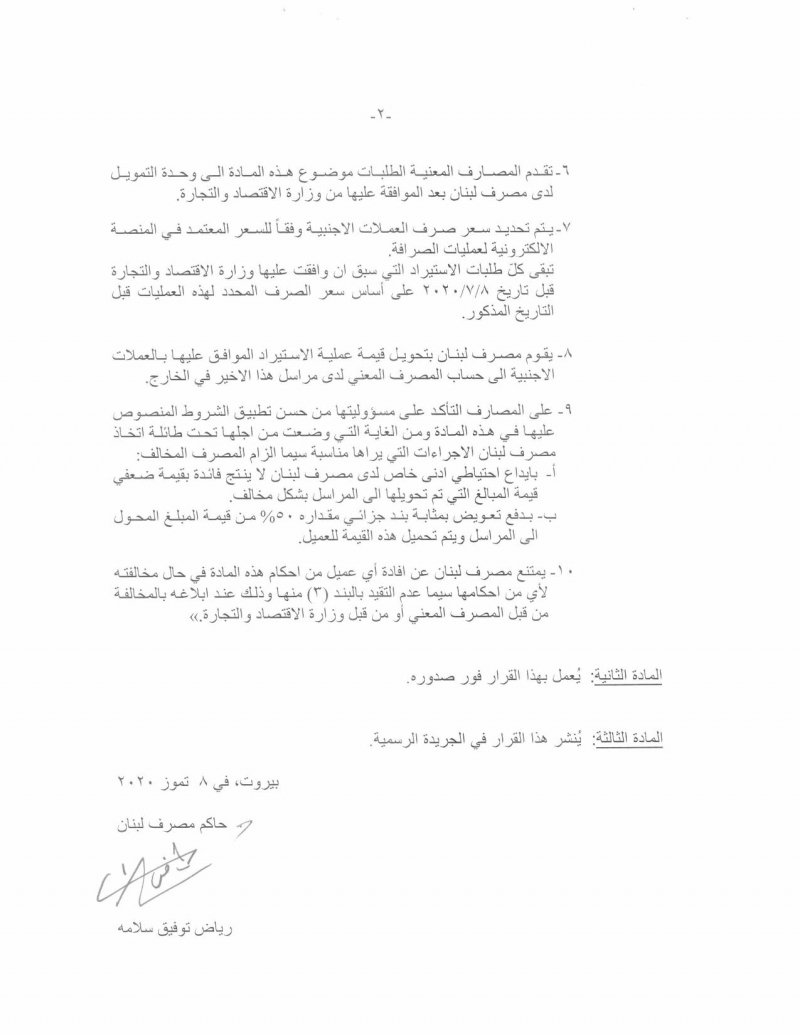 أصدر "مصرف لبنان" تعميماً بشأن التسهيلات التي يمكن ان يمنحها للمصارف والمؤسسات المالية، بحيث يمكن للمصارف الطلب من مصرف لبنان تأمين العملات الأجنبية تلبية لحاجات مستوردي ومصنعي المواد الغذائية وبقية المواد التي تدخل في الصناعات الغذائية.