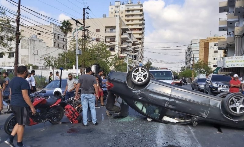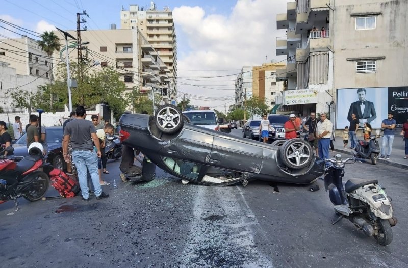 حادث سير يندر حدوثه في مدينة صور: انقلاب سيارة على سقفها في شارع ابو ديب